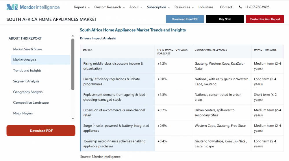 近两年南非及非洲市场家用电器市场呈现出明显的“能源驱动型增长”特征:一方面,长期电力短缺与频繁“限电(load shedding)”直接导致家电损坏与替换需求增加,成为市场短期增长的核心动力,相关研究显示家电市场规模保持约4%–6%的年复合增长,其中相当一部分来自被动“换新需求”;